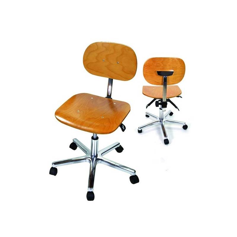 Silla para puesto de trabajo R-100300 con asiento y respaldo fabricados en madera con acabado barnizado mate de fácil limpieza.