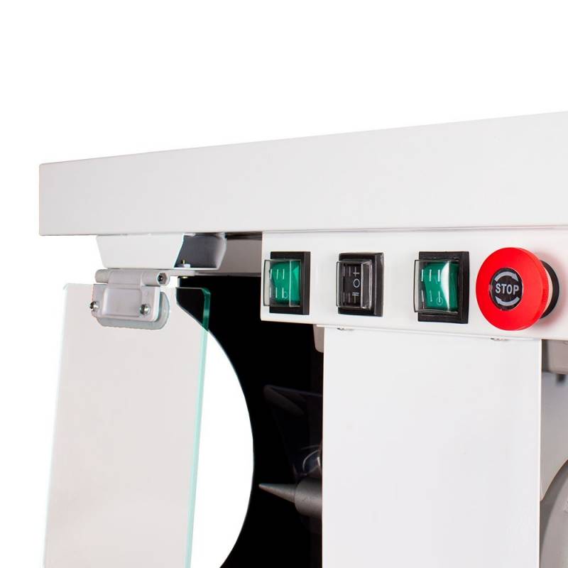 Equipado con 2 pantallas protectora permite realizar cómodamente y con plena seguridad los trabajos de pulido.