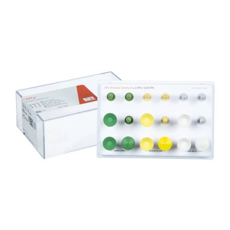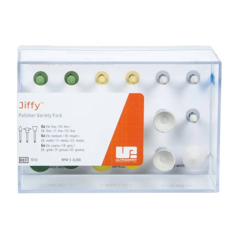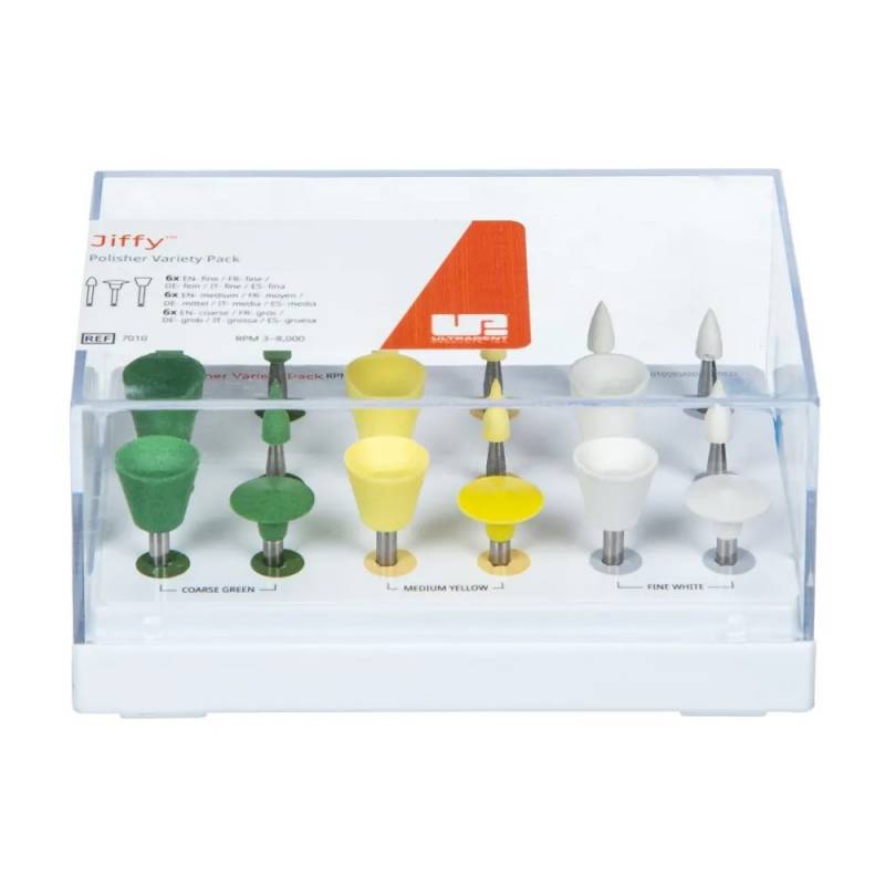 Jiffy Original de Ultradent es un sistema de pulido que consta de copas, puntas, discos y cepillos.