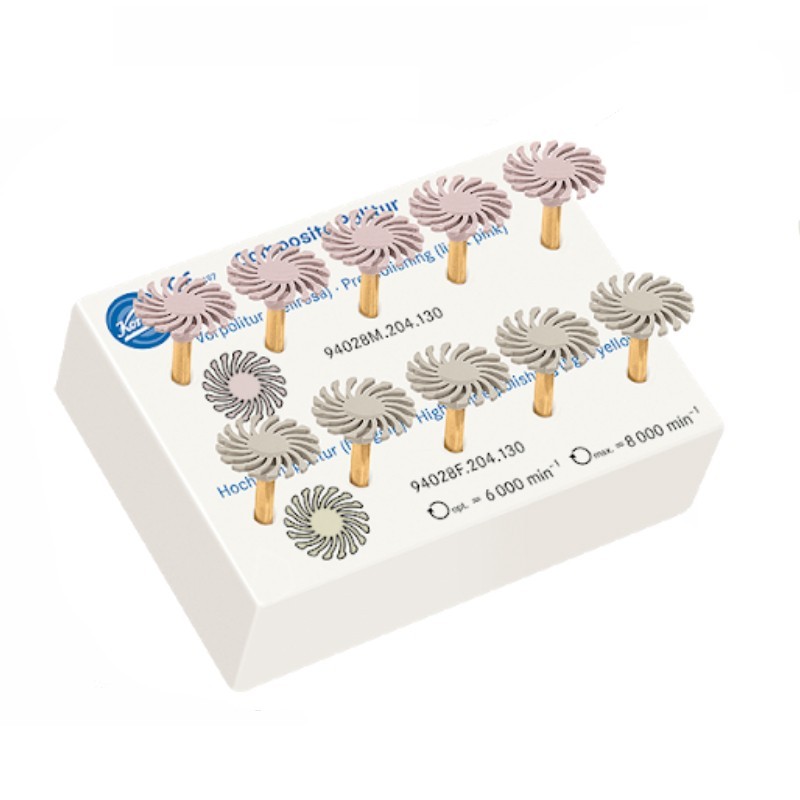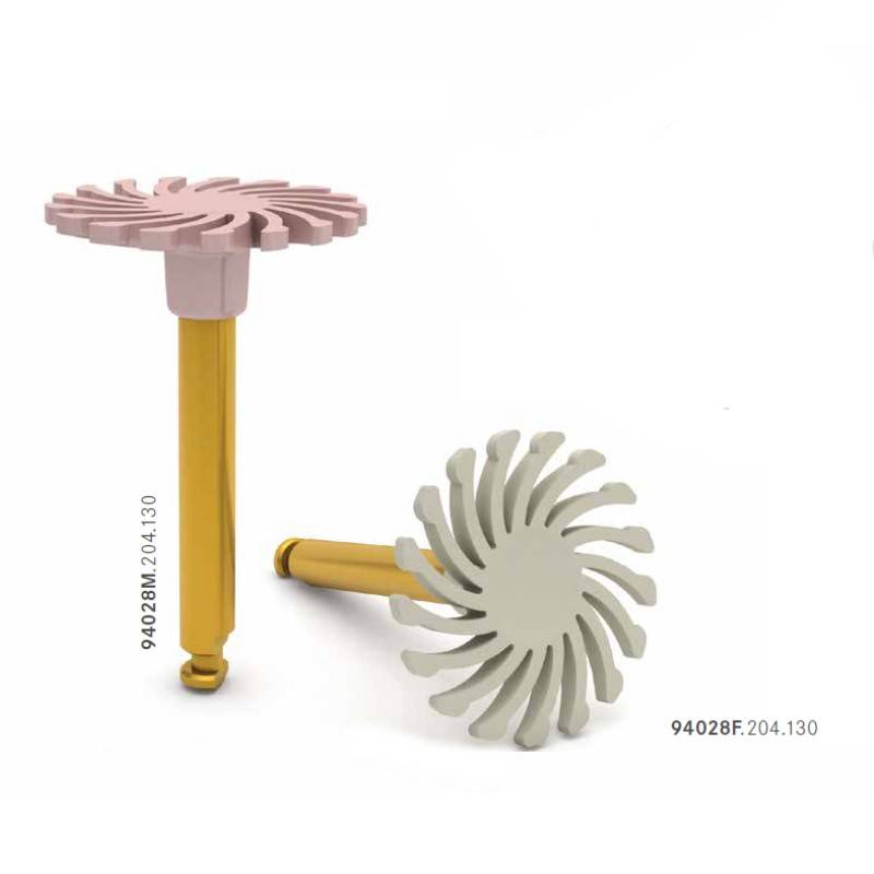 Estas ruedas abrasivas son flexibles, delgadas y se adaptan a la anatomía permitiendo su uso para pulir las superficies oclusales e interproximales. De esta manera se reduce a la mitad los tiempos y herramientas necesarias para pulir.