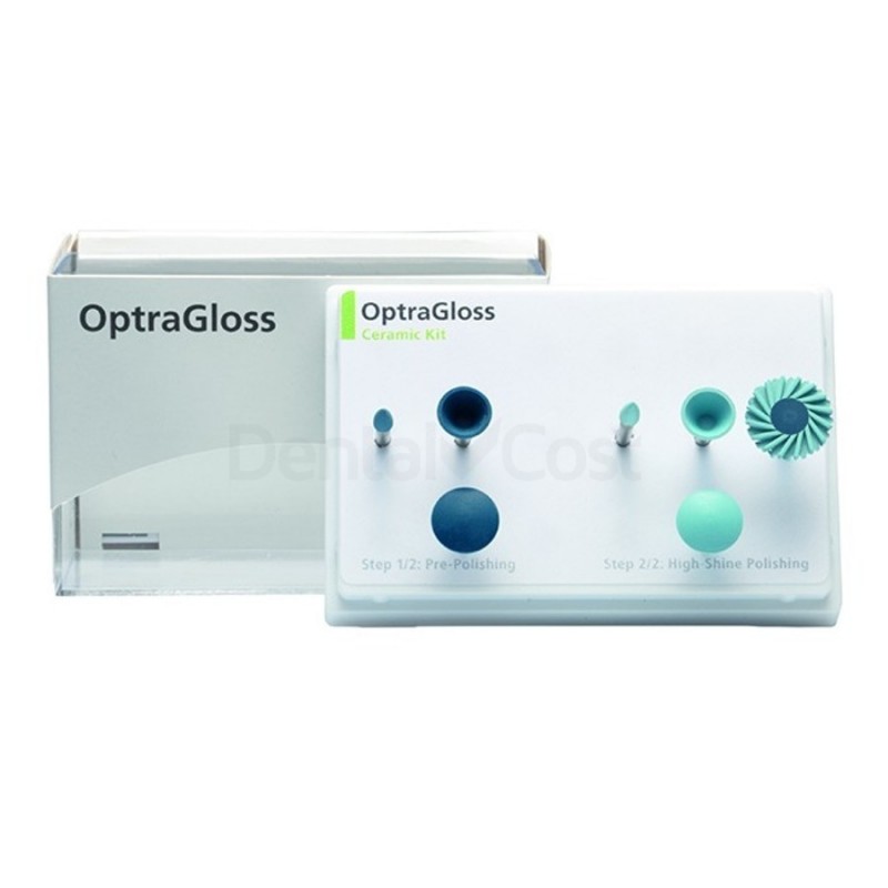 Los pulidores universales OptraGloss Ceramic Kit están indicados para pulido de restauraciones de cerámica de vidrio, cerámica feldespática y cerámica de óxido.