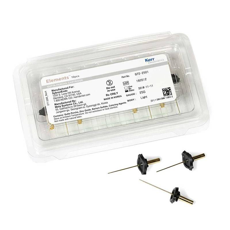 El cartucho de guttapercha Elements 25GA de Sybronendo contiene: 10 unidades.