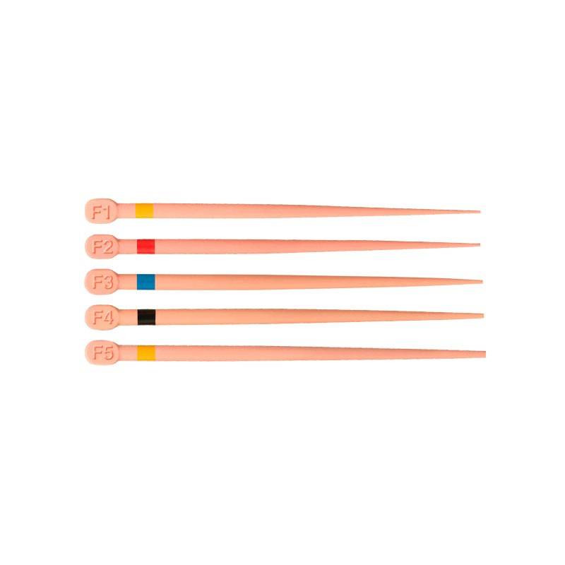 Gracias a sus puntas de conicidad variable garantiza un mejor ajuste a nivel apical. La conicidad depende del diámetro de la Gutta es decir, la F1 tiene un 7% de conicidad, F2 tiene el 8 % y F3 tiene el 9%.