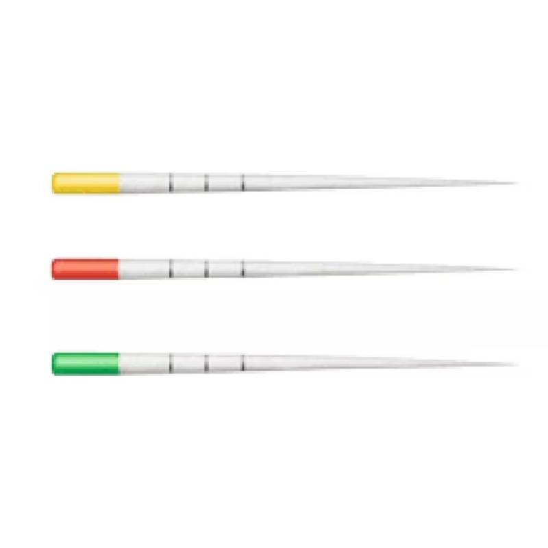 Puntas de papel absorbentes codificadas por colores para facilitar la identificación.