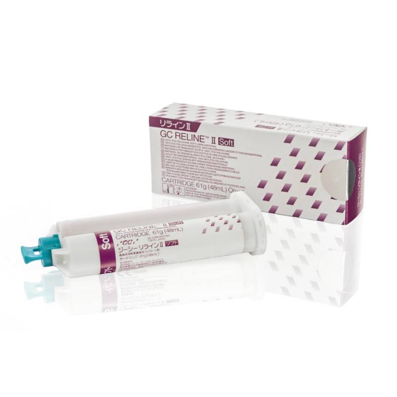 Reline II Soft de GC es un material para rebases blando de silicona (viny polysiloxane VPS), que puede usarse directamente en la boca. Adecuado para procedimientos de rebase en laboratorio y clínica.