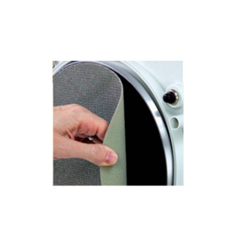 La recortadora Serantes fabricada en composite de alta resistencia, anticorrosión, cuenta con tapa con apertura sencilla para acceder al disco, sistema de limpieza por agua y discos con fijación del tipo gancho/lazo fácilmente cambiable.