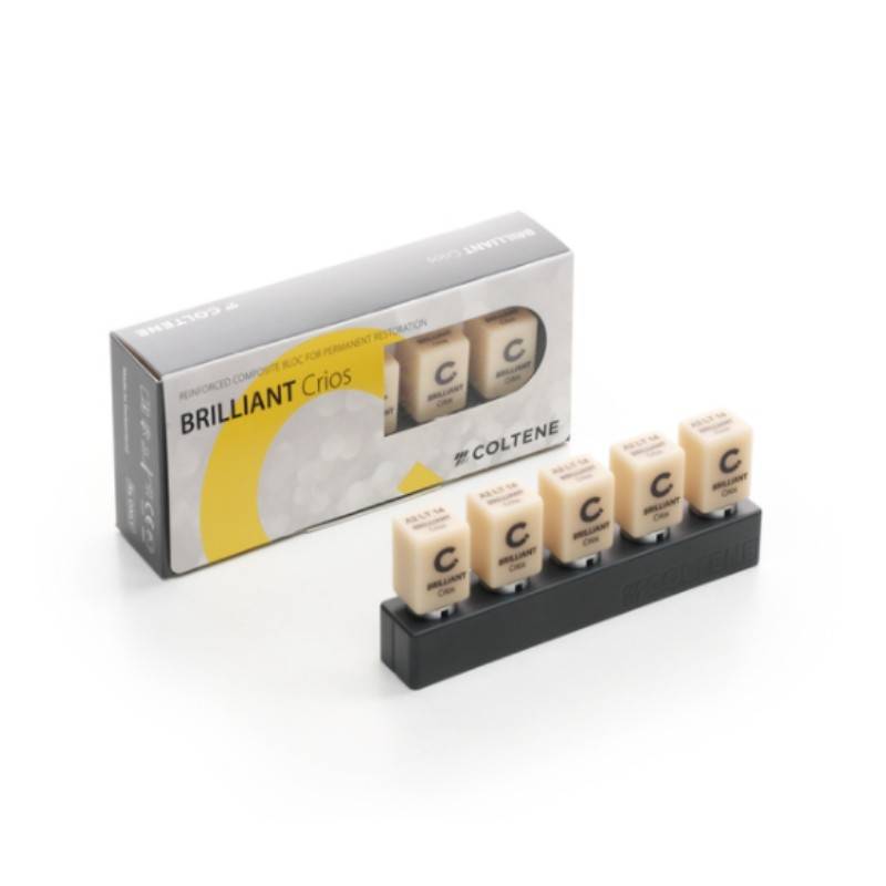 Brilliant Crios de Coltenè es un bloque de composite reforzado diseñado para restauraciones definitivas indirectas mediante el proceso de tallado CAD/CAM.
