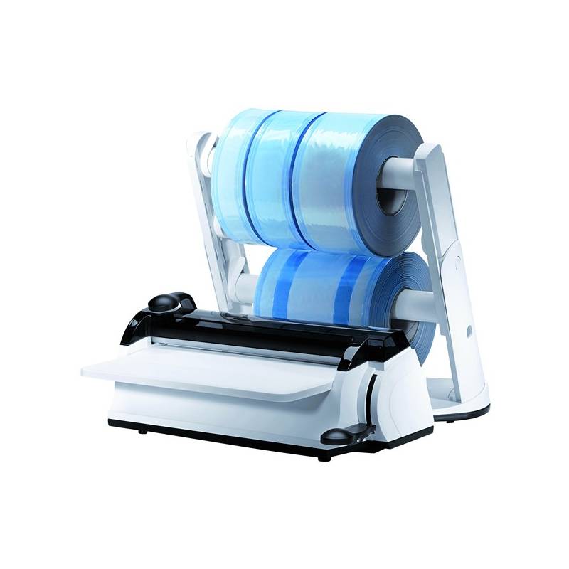 Con doble portarollos para un uso simultáneo de varios rollos de esterilización.