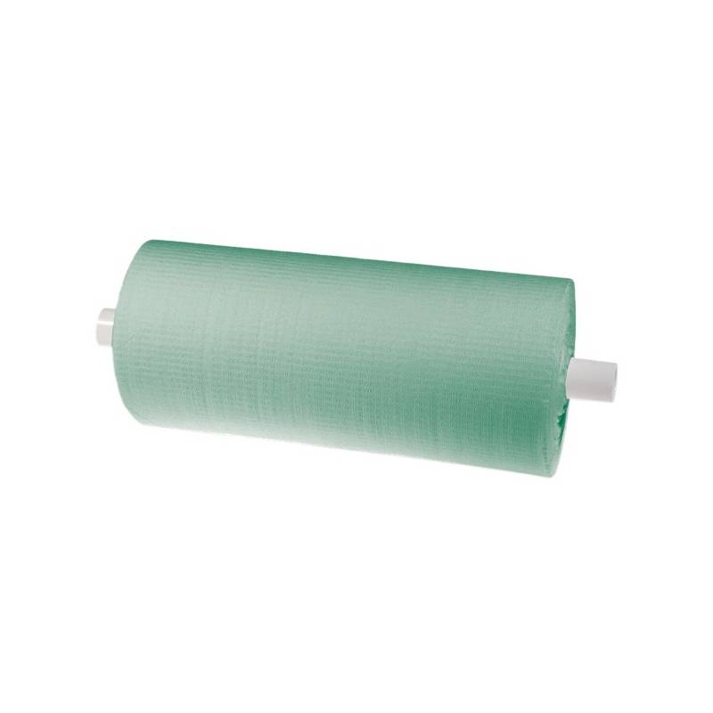 Rollo de baberos fabricados con una capa de papel y otra de plástico.