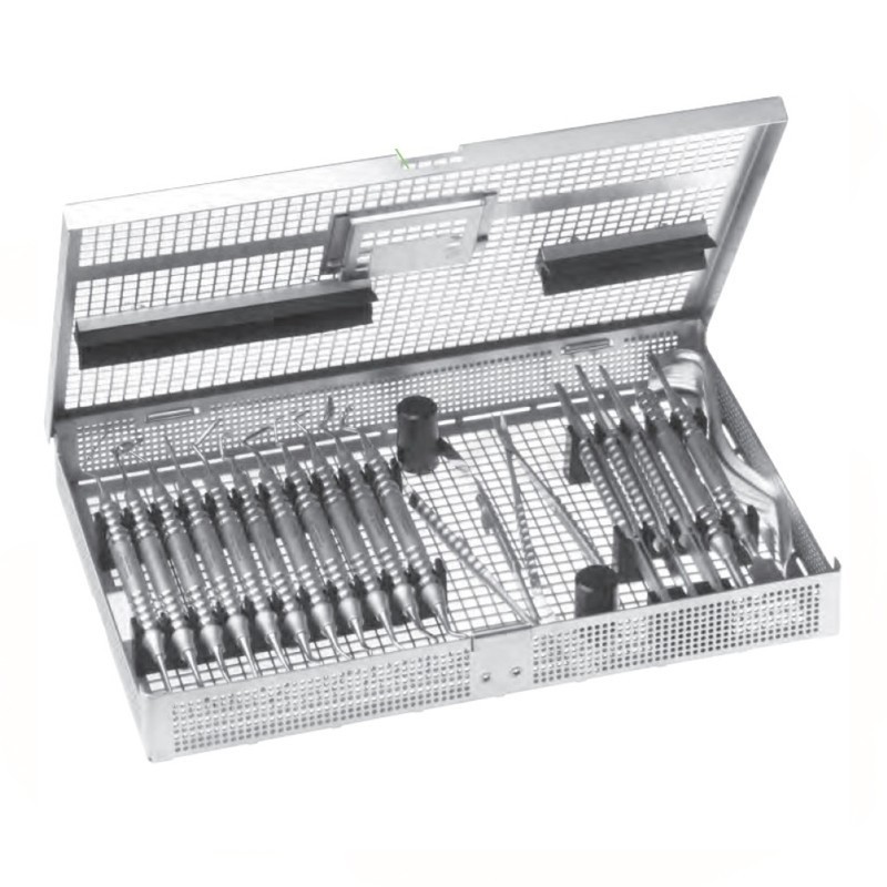 Este set contiene instrumentos con mango RS, redondo y sólido, que ofrece una transmisión de la potencia mejorada y con mayor control y mango SL, ultraligeros. Ambos permitiendo un trabajo táctil sin dañar las estructuras adyacentes.