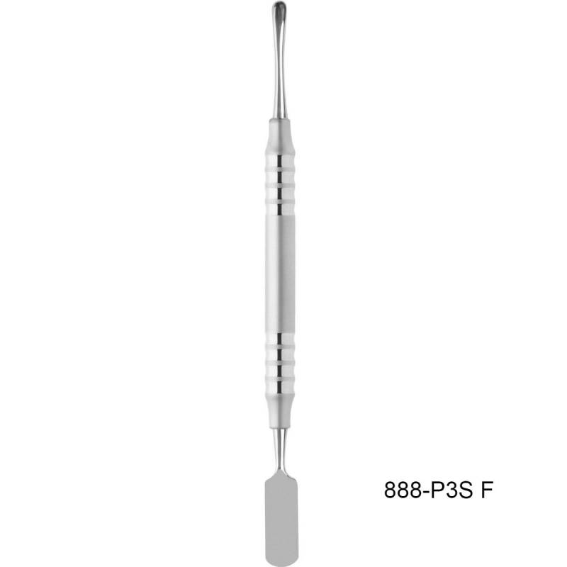 - 888-80 F - Micro elevador perióstico “Iglhaut” 17,1 cm. Mango SL. Doble parte activa, su parte activa con forma de lanza permite el desprendimiento de la papila así como de la cresta marginal de la encía. La aleta mucoperiostal se puede desprender suavemente con su parte activa con forma de pala.