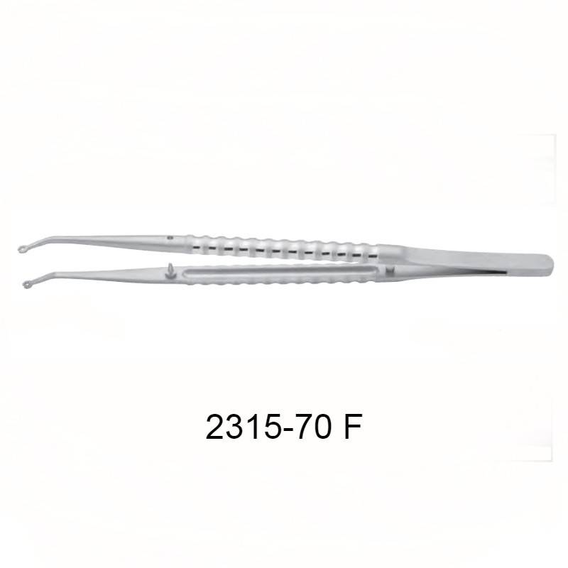 - 2315-70 F - Pinza para sutura y membrana - micro - 17, cm - curva. Mango RS. Permiten una óptima inserción de la membrana de regeneración ya que la encía se puede suturar simultáneamente. Mientras se sostiene el tejido, se puede guiar con precisión la aguja a través de la abertura evitando en gran medida cualquier desgarro.