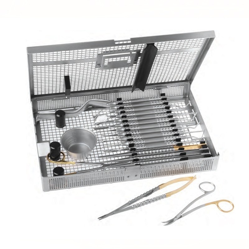Este set presenta una selección básica diseñada para procedimientos quirúrgicos de implantología de bajo riesgo, minimamente invasiva.