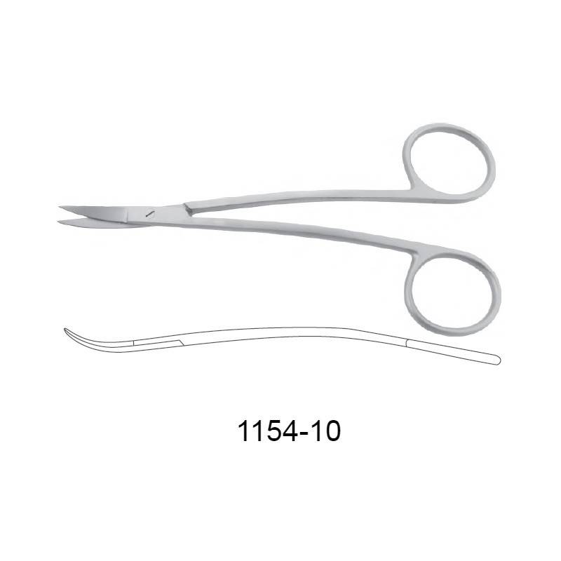 1154-10 - Tijeras quirúrgicas La Grange - SC - 11,5 cm - Micro dentado - Curva en S - Mango RS - Las tijeras para encías curvas permiten una incisión diagonal en la zona distal. El micro dentado de un solo lado hace posible el adelgazamiento del lóbulo.