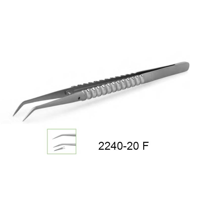 2302-50 F - Micropinza quirúrgica - 17,1 cm - 1:2 - 0,8 mm - recta - Mango RS. Equipadas con dientes entrelazados (1: 2) agarra los tejidos blandos sin presionar el instrumento con firmeza y se puede aplicar una mayor fuerza de tracción. Esto evita que el tejido se dañe. Desventaja: sus dientes afilados pueden destruir estructuras que se lesionan con facilidad como vasos sanguíneos y nervios.