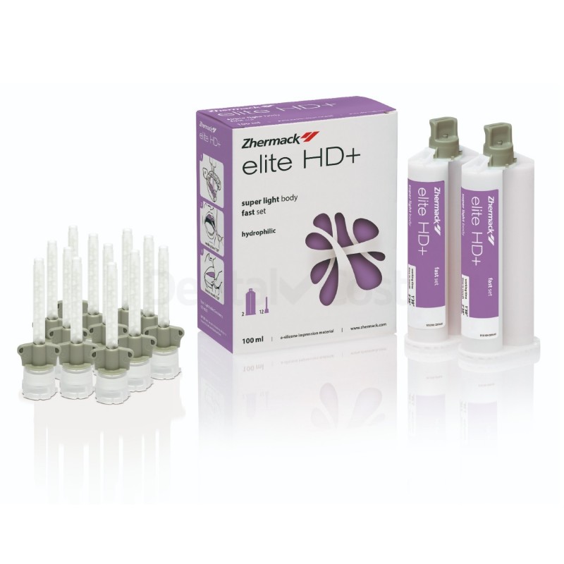 Elite HD+ Super Light Body Fast Set de Zhermack es una silicona de adición hidrocompatible de baja viscosidad indicada para prótesis fija y prótesis removibles total o parcial.