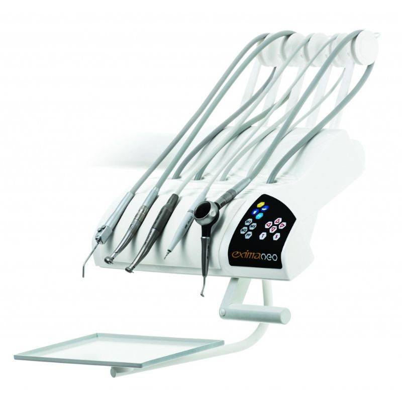 El equipo odontológico Exima Neo de Makromed presenta todo lo necesario que un profesional del sector dental precisa para realizar limpiezas dentales, tratamientos y cirugías.