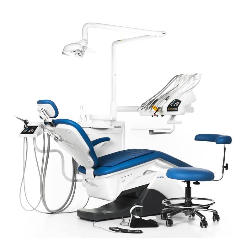 El sillón dental Amicus y el control de la unidad neumática forman un todo integrado que garantiza un funcionamiento fiable y duradero, sin limitar la posibilidad de incorporar a la estación de trabajo dispositivos electrónicos modernos. Es la combinación perfecta de funcionalidad, fiabilidad y comodidad para paciente y odontólogo.