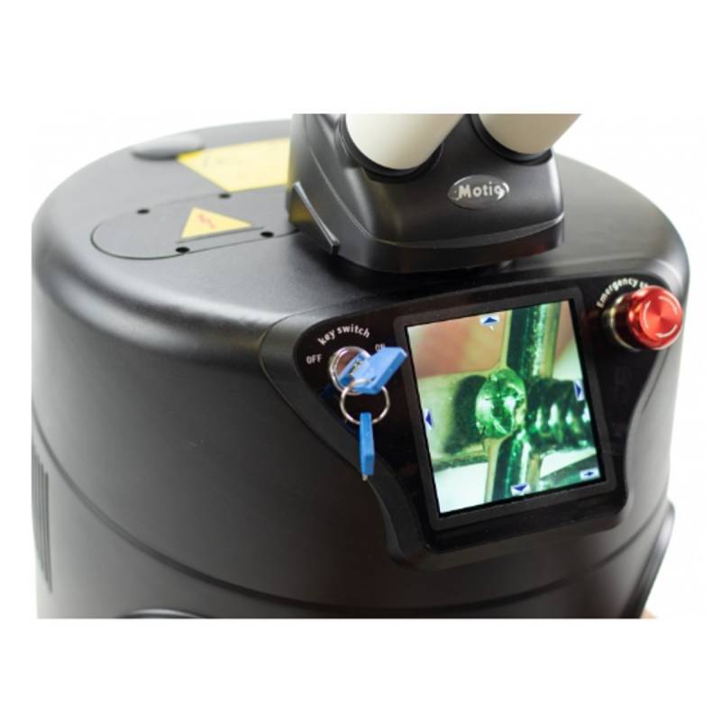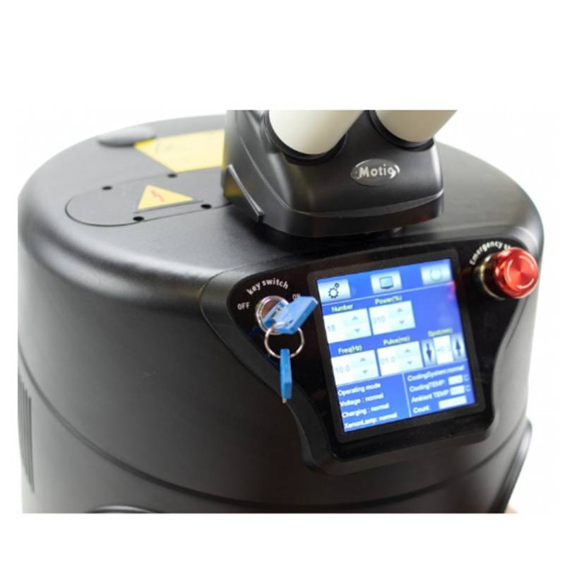 La gran pantalla táctil de 7” permite la configuración de diferentes parámetros como la potencia y frecuencia, el ajuste del tamaño del disparo láser (de 0,15 a 2 mm) y la capacidad de guardar hasta 20 memorias.