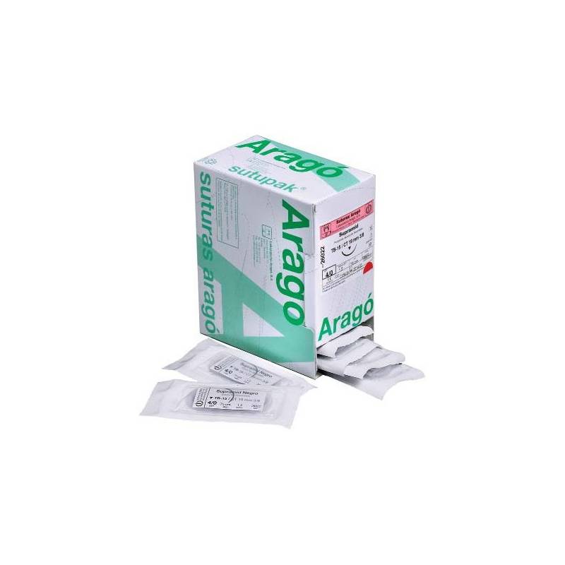 Sutura Monofilamento Supramid TB-10 Aguja 3/8 Círculo Triangular 12mm 6/0 Hebra 75cm Negro No Absorbible 36u Aragó