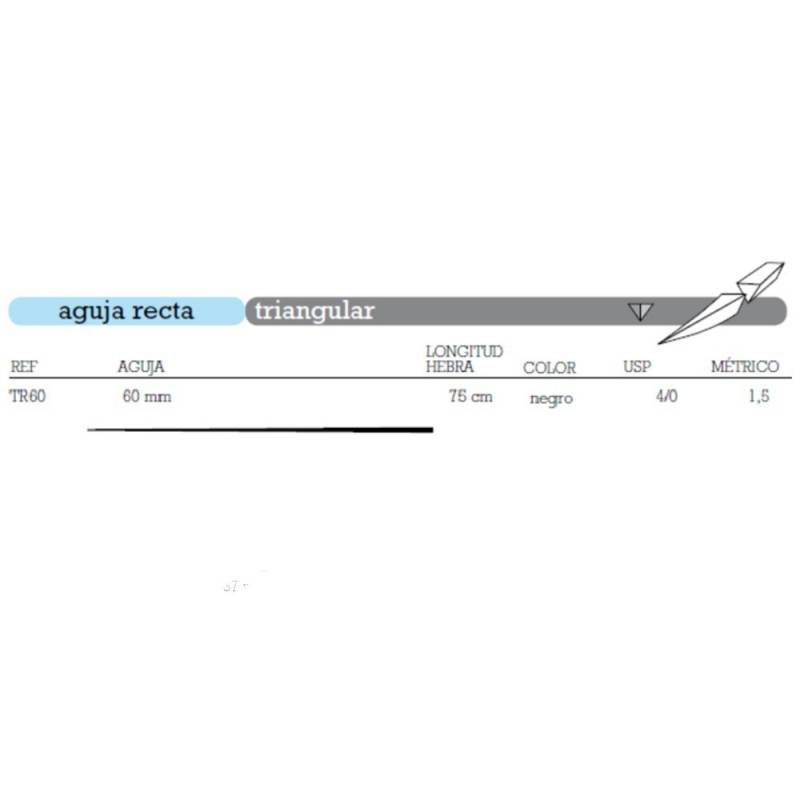 SUTURA TR-60 DE SEDA TRENZADA AGUJA RECTA TRIANGULAR 60 MM USP 4/0 HEBRA 75 CM NEGRA - NO ABSORBIBLE