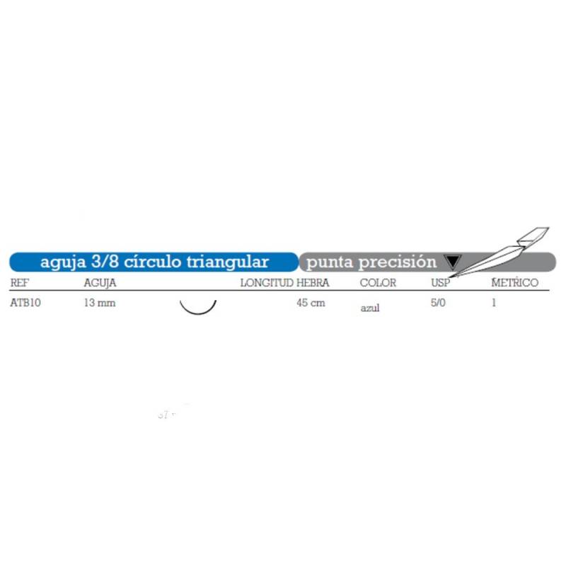 SUTURA NO ABSORBIBLE DE POLIPROPILENO ATB-10 AGUJA 3/8 CÍRCULO TRIANGULAR, PUNTA PRECISIÓN 13 MM USP 5/0 HEBRA 45 CM AZUL