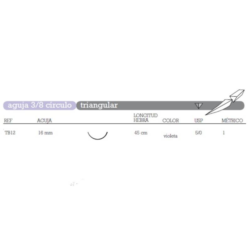 SUTURA ABSORBIBLE PDO POLIDIOXANONA TB12 AGUJA 3/8 CÍRCULO TRIANGULAR 16 MM USP 5/0 HEBRA 45 CM VIOLETA