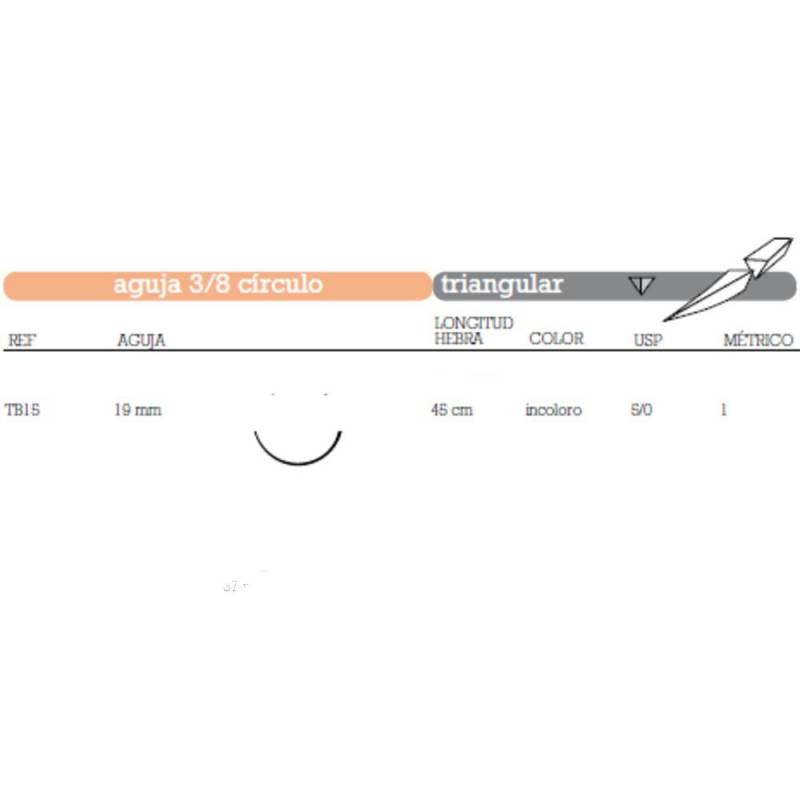 SUTURA ABSORBIBLE DE POLIGLECAPRONA TB15 AGUJA 3/8 CÍRCULO TRIANGULAR 19 MM USP 5/0 HEBRA 45 CM INCOLORA