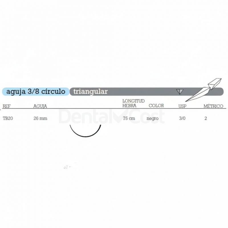 SUTURA TB-20 DE SEDA TRENZADA AGUJA 3/8 CÍRCULO TRIANGULAR 26 MM USP 3/0 HEBRA 75 CM NEGRA - NO ABSORBIBLE