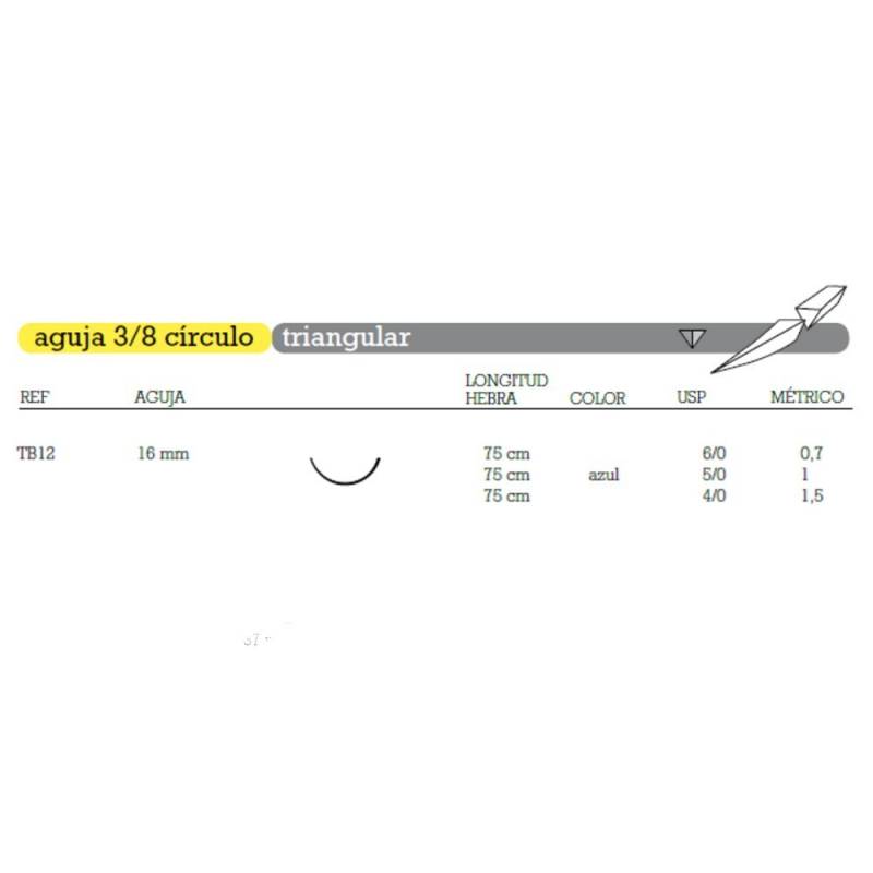 SUTURA NO ABSORBIBLE DE NYLON TB-12 AGUJA 3/8 CÍRCULO TRIANGULAR 16 MM HEBRA 75 CM AZUL