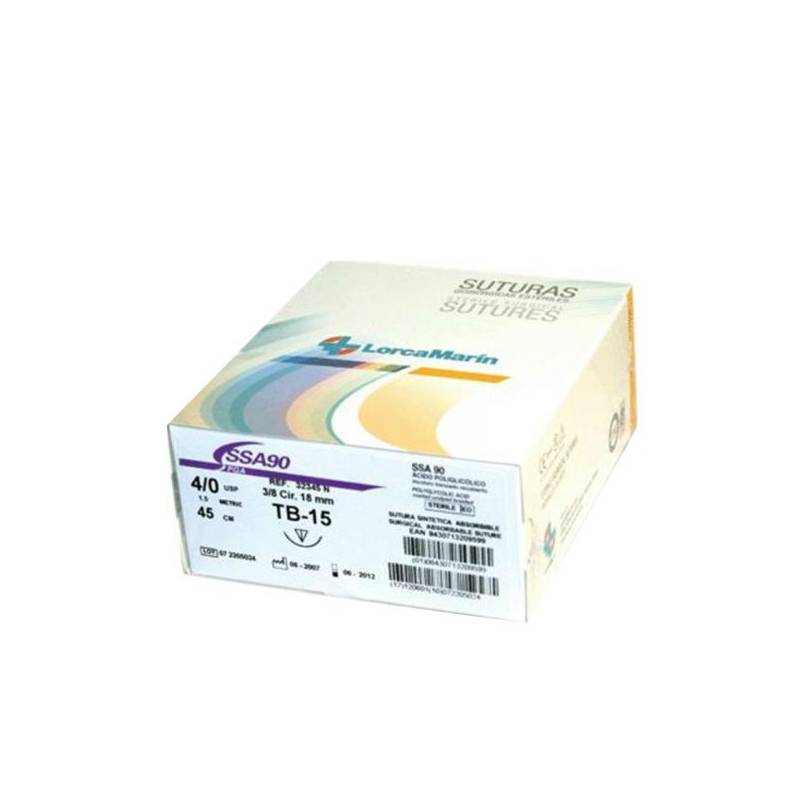 La sutura sintética SSA90 es de tipo TB-15, posee una mínima reacción tisular.