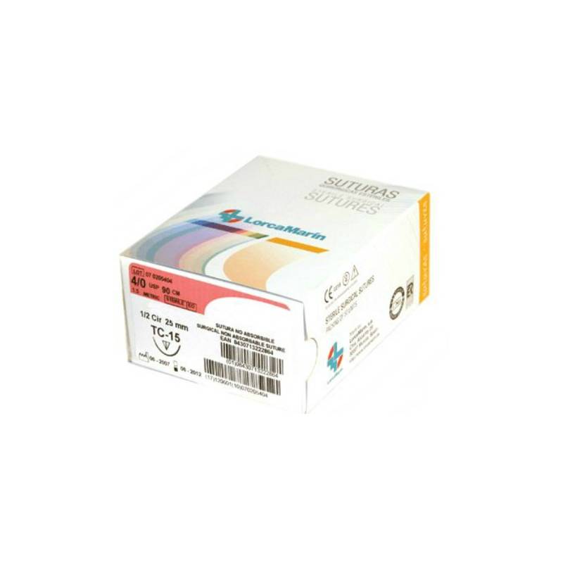La caja de sutura de nylon TC-15 4/0 de Lorca Marin contiene 12 unidades.