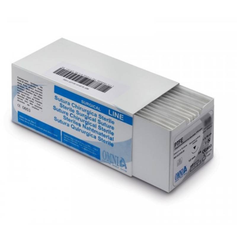 Sutura PTFE USP 4/0 Aguja 16mm 3/8 Círculo Punta Cortante, Hebra 75cm Estéril Caja 12 uds Omnia