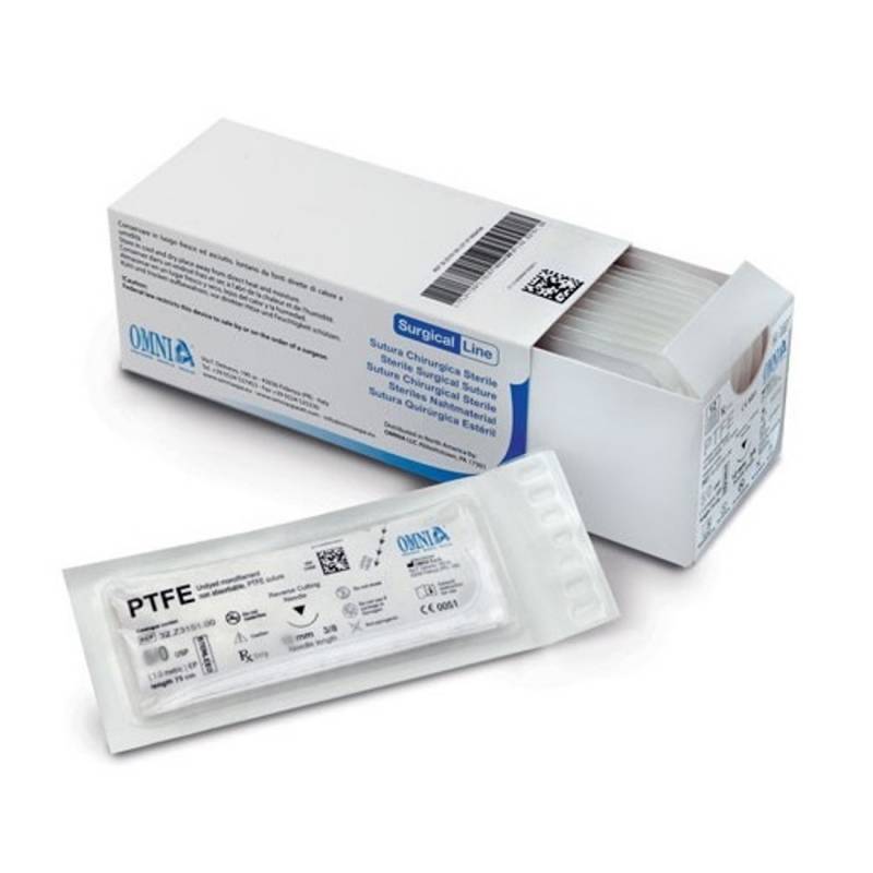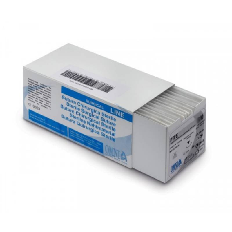 Sutura PTFE USP 3/0 Aguja 19mm 3/8 Círculo Punta Cortante, Hebra 75cm Estéril Caja 12 uds Omnia