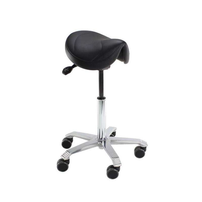 - Taburete tipo "silla de montar" con asiento fijo y estrecho 34cm.