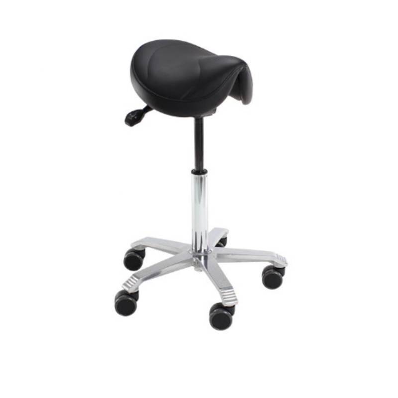 La silla ergonómica Amazone de Score Dental es una silla tipo "silla de montar" con base de aluminio tapizado con el sistema "antibacterias" que permite la limpieza con agua y jabón, no con alcohol.