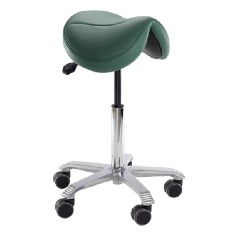 Jumper de Score Dental es una silla ergonómica tipo "silla de montar" con base de aluminio. Su tapizado con el sistema "antibacterias" permite la limpieza con agua y jabón pero, NO con alcohol.