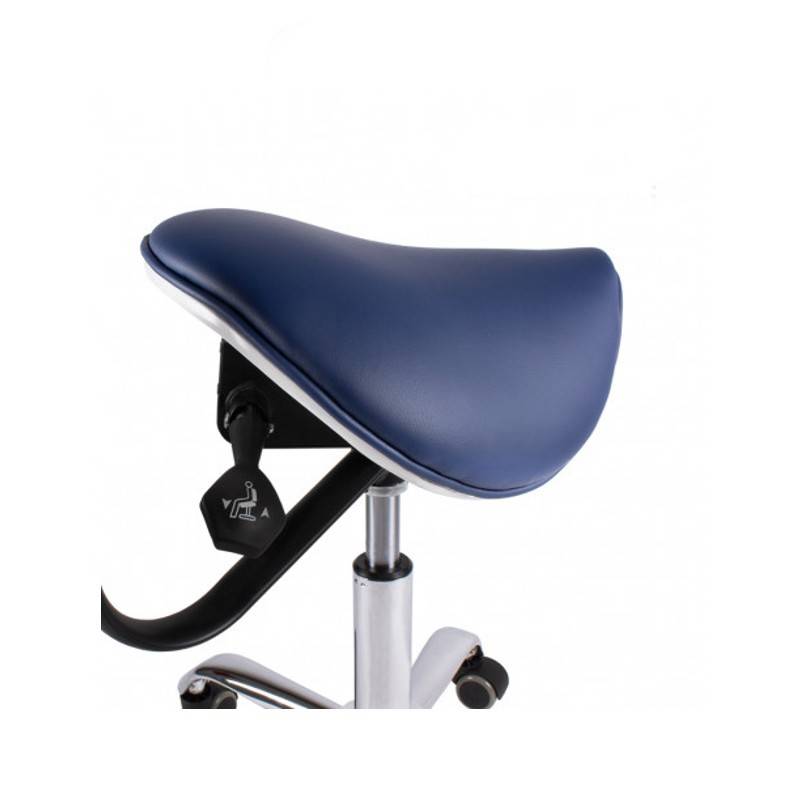 Comfort Plus Stool de Bader es una silla ergonómica tipo "silla de montar" con estructura compacta fabricada en acero inox AISI304 cromado con ruedas de alta resistencia y tapizado de calidad y durabilidad, tricapa: microfibra, cojín de espuma flex comfort y marco soporte, de fácil limpieza y buena higiene.