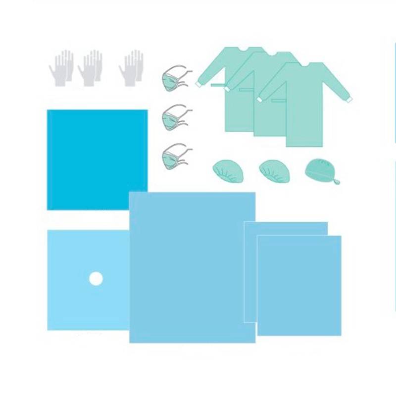 - Batas, mascarillas, gorros y paños quirúrgicos, uno fenestrado.