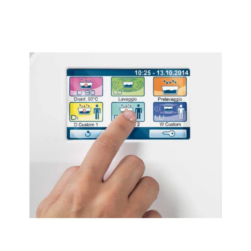 Gracias a su pantalla LCD táctil a color con interfaz clara e intuitiva, el usuario seleccionará el programa que más se ajuste a sus necesidades, eligiendo entre los preprogramados y los personalizables. Una vez elegido, el ciclo continúa con completa autonomía.