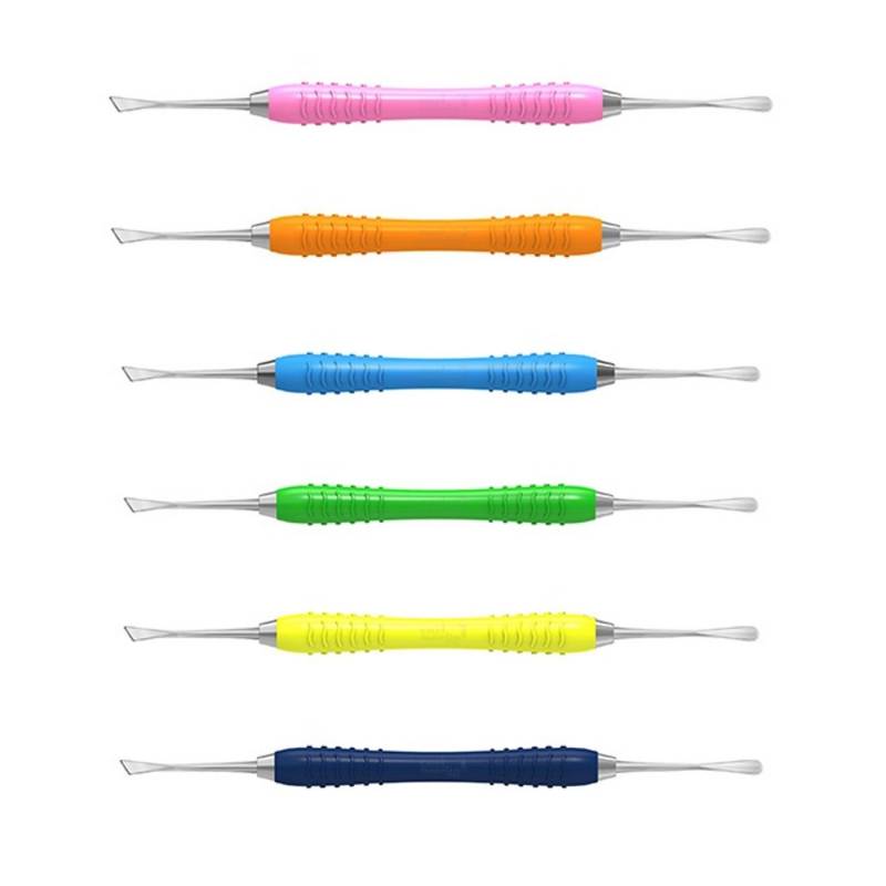 Con mango de silicona, Colori Silikon, termoestable y antideslizante de núcleo de acero inoxidable muy ligero y sellado antibacteriano. Mangos codificados por color para una identificación sencilla del instrumental.