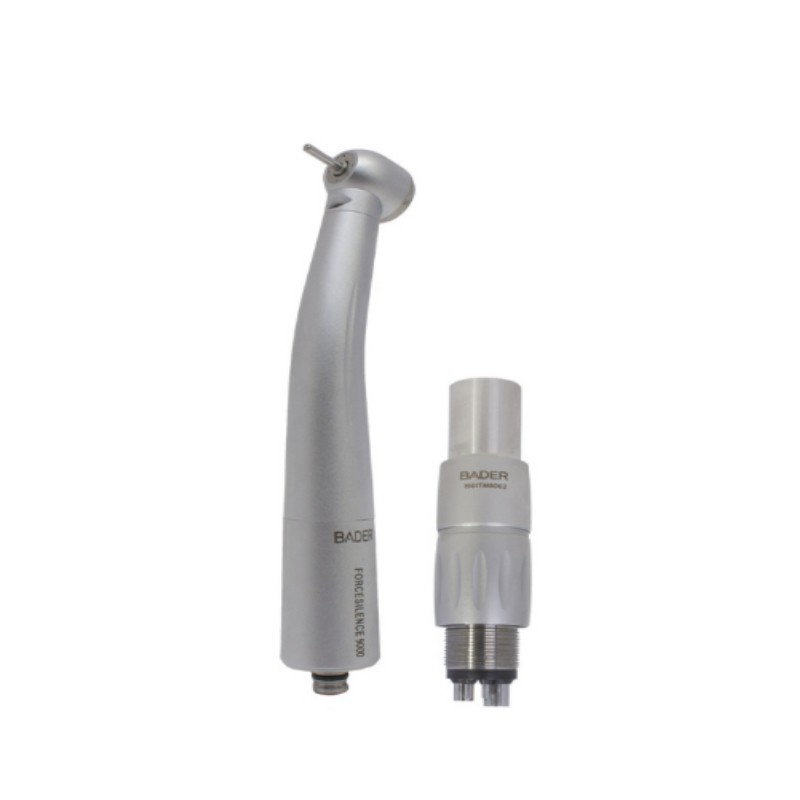 Force Silence 9000 de Bader es una turbina dental con acople LED compatible NSK, que posee rodamientos cerámicos para un funcionamiento silencioso y alargar la vida útil de este instrumental rotatorio.