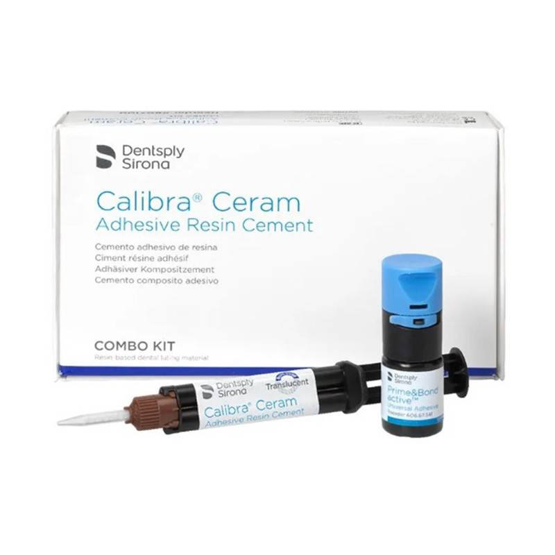 Calibra Ceram de Dentsply De Trey es un cemento estético de resina de sistema versátil de polimerizado: curado, auto-curado y curado dual, compatible con gran número de material restaurador indirecto, aunque existen instrucciones específicas para su uso con restauraciones translúcidas.