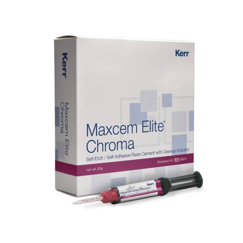 Maxcem Elite Chroma de Kerr es un cemento de resina autoadhesivo y autograbable de polimerización dual.