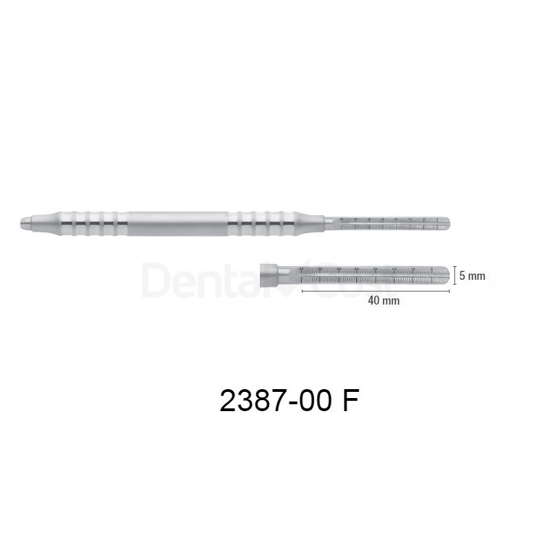 - 2387-00F - Mango de espejo bucal, especialmente indicado para endodoncia - 15,4 cm - graduado, no calibrado - La escala de medición ayuda a definir con precisión la longitud de trabajo de las puntas endodónticas.