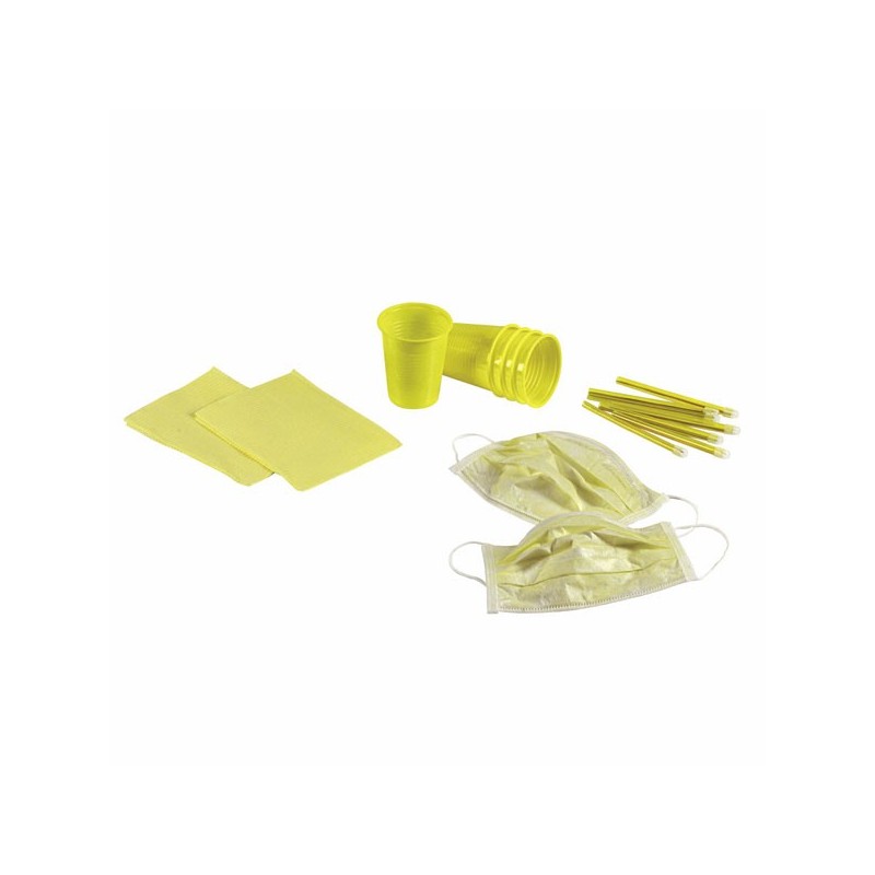 - Cada kit contiene: servilleta, aspirador de saliva, vaso y mascarilla.